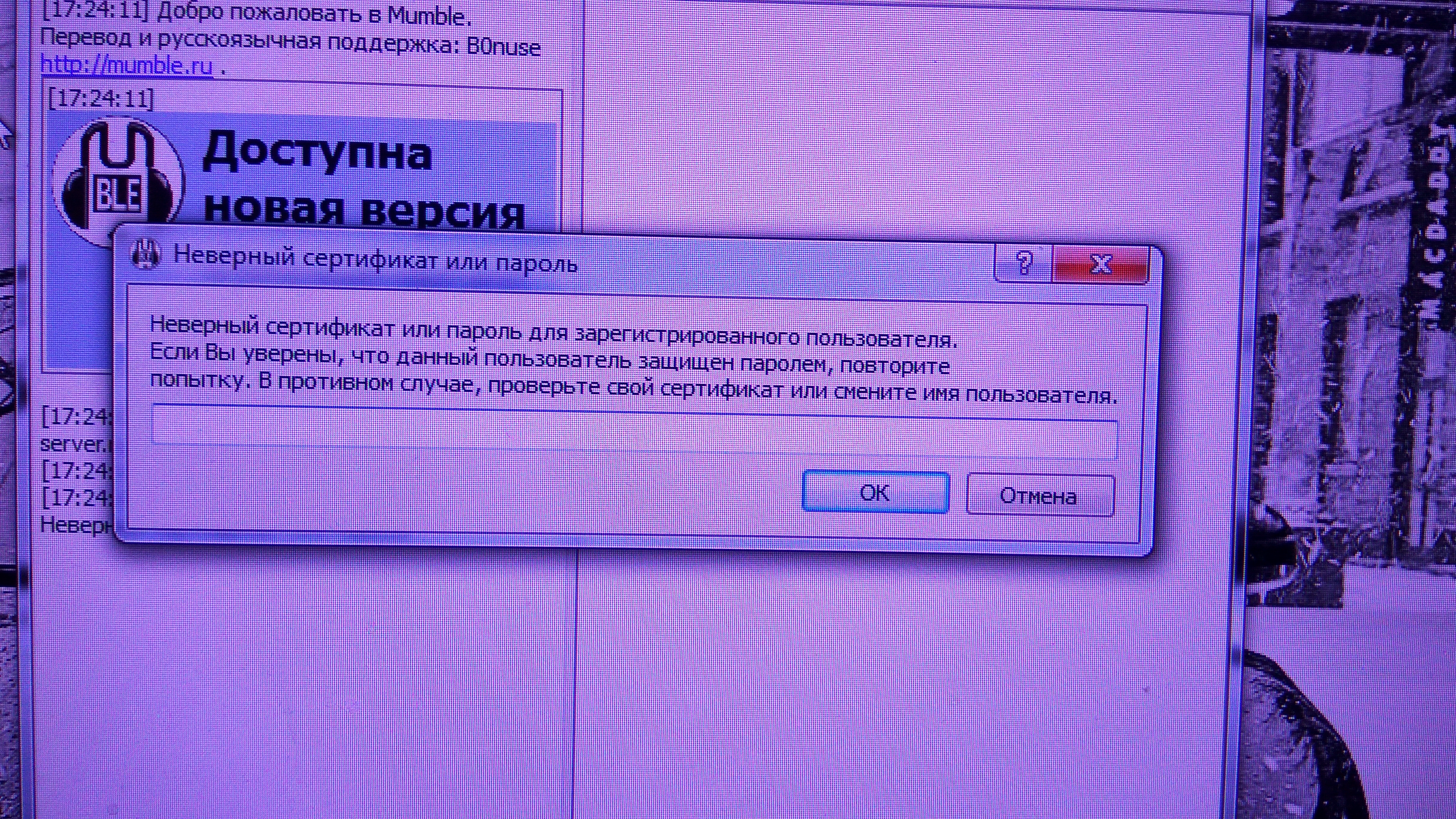 Re: Неверный сертификат или пароль для зарегистрированного пользователя
