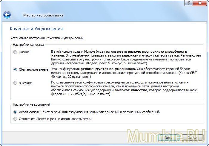 В мастер настройки звука была добавлена новая страница, которая позволяет настроить качество передаваемого звука и задержку, а также переключиться между использованием функции Текст-в-речь или звуков.