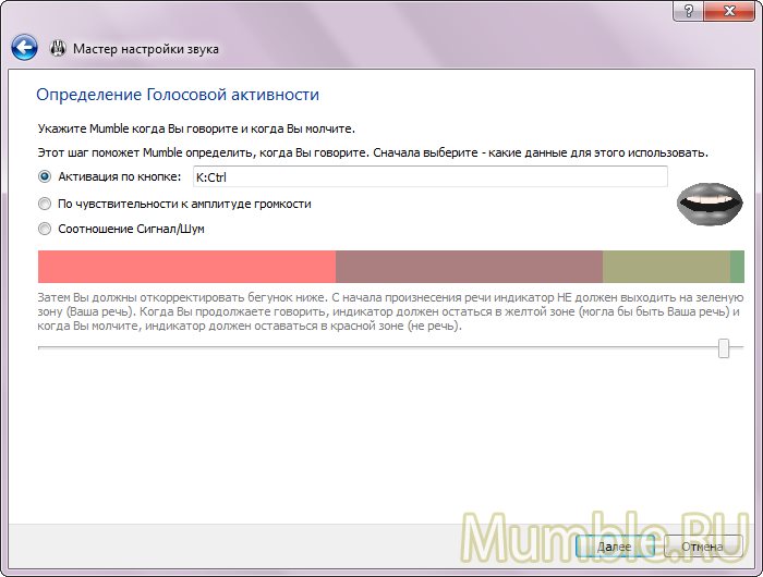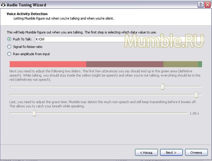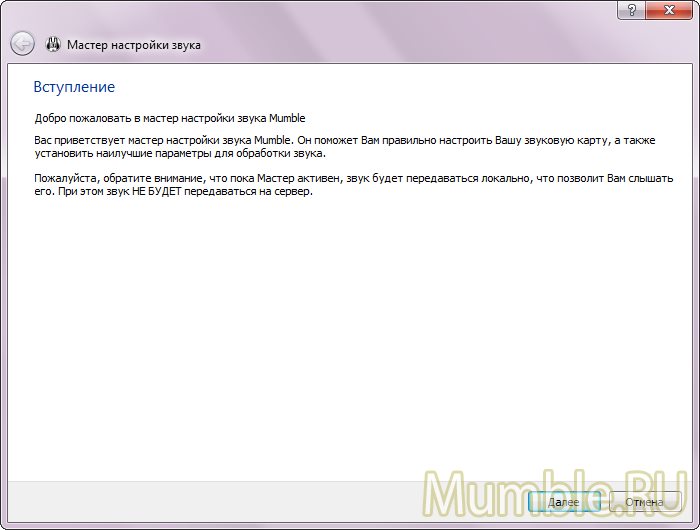 При запуске Mumble открывается помощник настройки, также его можно вызвать в меню Настройки -> Мастер настройки звука