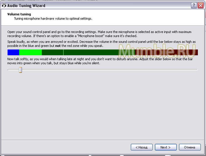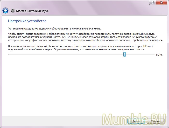 Далее нам предложат подобрать минимальное значение буфера аудиокарты для оптимизации работы Mumble-клиента