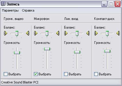 Заметим, что в некоторых системах (обычно, у кого встроенные звуковые и будут неактивны пункты Воспроизведение и Запись) для перехода к окну настройки Записи нужно выбрать в списке Микшер, отвечающий за ввод звука в Вашей системе.