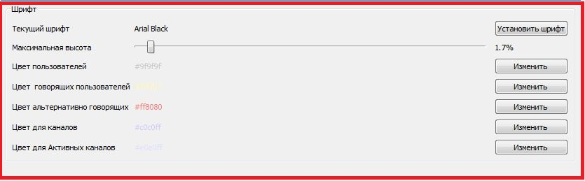 Красная часть настроек, представляет собой настройку шрифта, которым будет отображаться список пользователей или связанных каналов.
