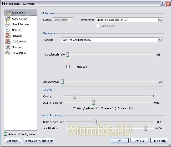 Re: Экспертные настройки Mumble