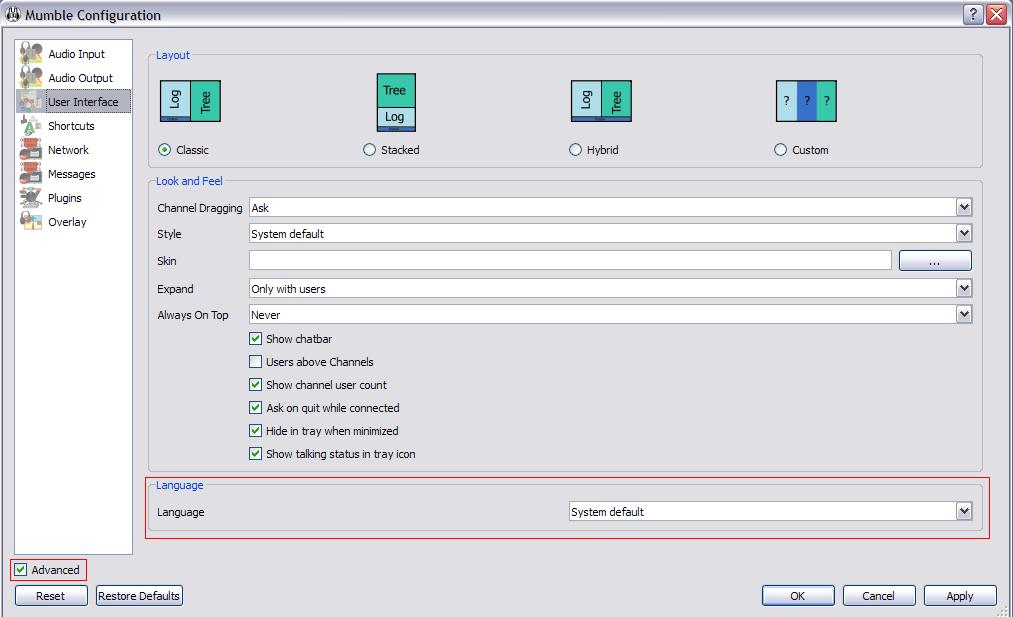 2. Языковые настройки должны быть выставлены по-умолчанию. 3. Для того, чтобы действие пакета вступило в силу - нужно перезапустить клиент Мамбл.