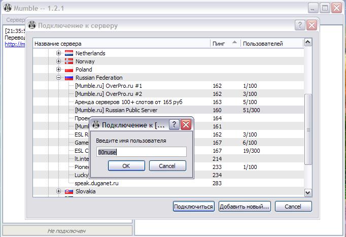 В этой и других процедурах Вы можете добавить сервер в список Избранных При добавлении Вы вводите данные для подключения (в т.ч. свой ник на сервере)