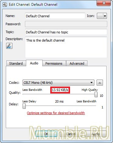 Так вот, бесплатной версией можно пользоваться с ограничением в 32 слота и максимальное качество связи, которое можно выставить для канала - CELT Mono (48kHz) - 13,92 KiB/s
