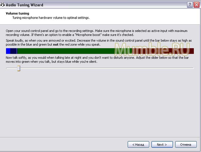 Далее нам предложат подобрать минимальное значение буфера аудиокарты для оптимизации работы Mumble-клиента