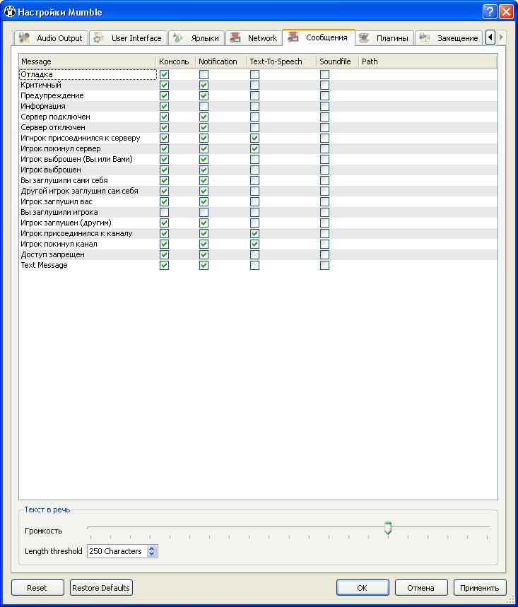Эта вкладка отвечает за механический голос. Он сообщает кто вошел, вышел, отключился, подключился и так далее.
