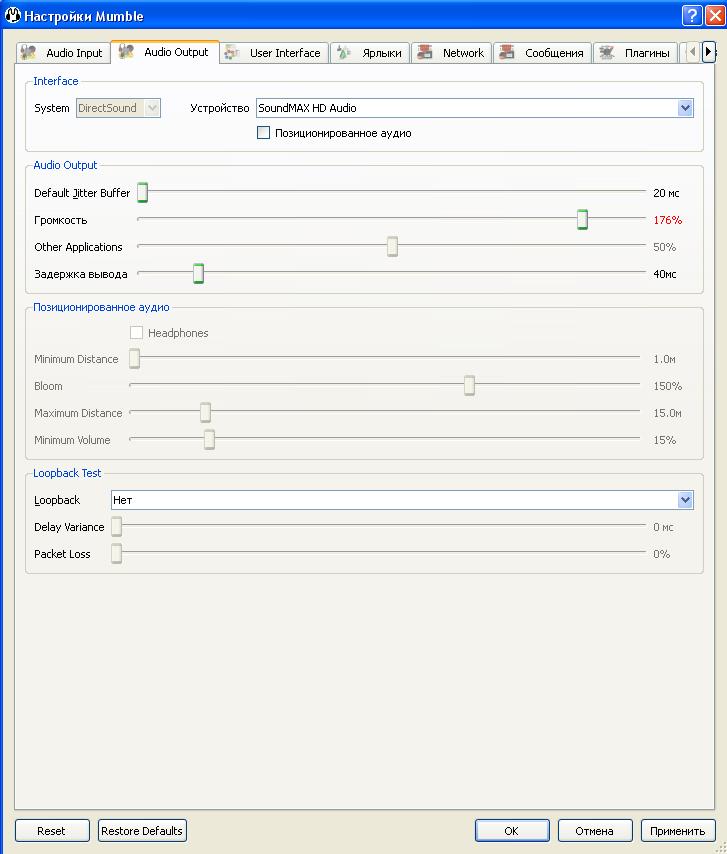 Под ней есть квадратик "Позиционированное аудио". Если там поставить галочку, то активируется "Позиционированное аудио". Дело в том, что ряд игр поддерживает возможность привязывать ваши переговоры в Мамбле к положению персонажей в игре. То есть говорят далеко - слышен шепот слабый. Со спины - звук со спины. И так далее. В целом все настройки считаю понятными, но у самого таких игр нет, а не проверив - писать не буду.