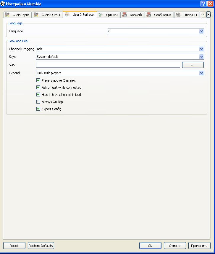 Для изменения внешнего вида Mumble используются скины viewtopic.php?p=1258#p1258