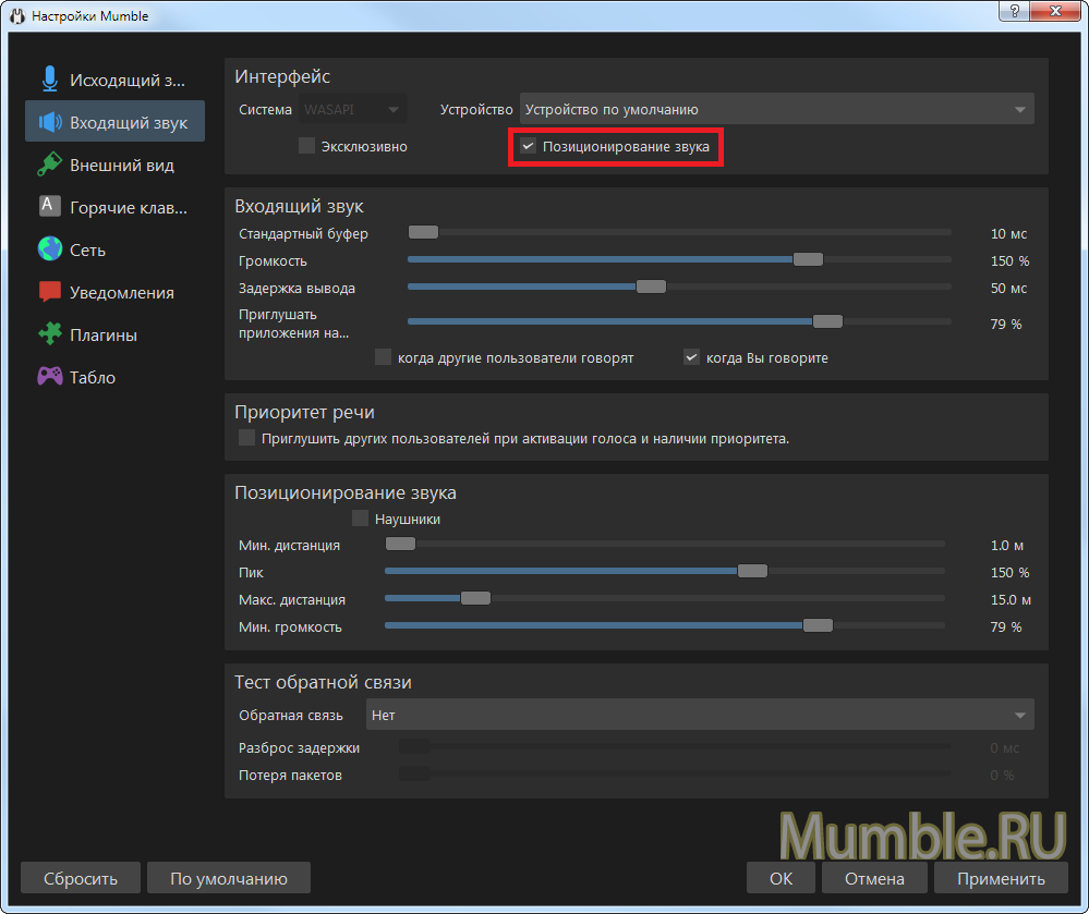 Где включить позиционирование звука?