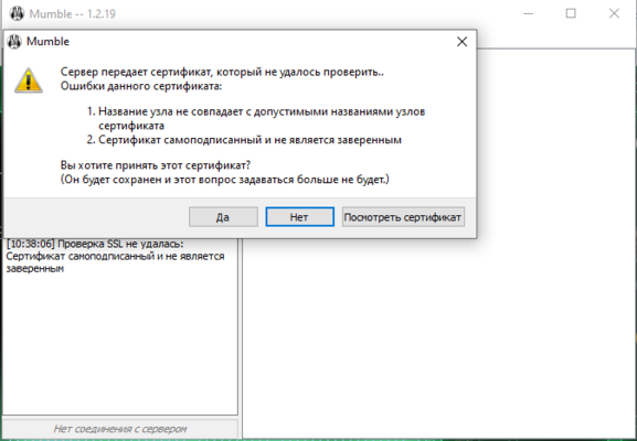 Не могу зайти на серв в мамбле из-за сертификата, винда 10