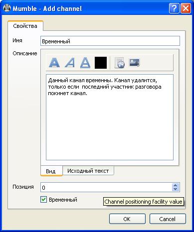 - Диалог Добавления/Редактирования постоянного канала Поскольку мы добавили много новых функций, для каналов в новой версии мы объединили их в простой в использовании диалог. Он может быть использован как для выполнения основных задач, так и для переименования канала, настройки описания или пароля. Для опытных пользователей имеется расширенный режим, в котором можно вручную настроить списки ACL и Группы.
