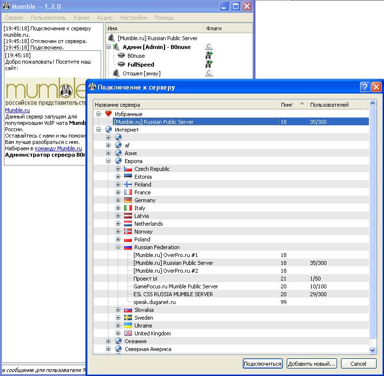 Мы выпустили новую версию 1.2.0 Mumble 10 декабря, 2009. В этой версии используется новый протокол между клиентом и сервером, т.е. клиент 1.2.0 совместим только с серверами 1.2.0 или более новыми, клиент 1.1.8 не может подключаться к серверам версии 1.2.x. Новый протокол легко расширяется, поэтому проблемы несовместимости больше не повторятся. Если сервер, которым вы пользуетесь версии 1.1.8, то в пакет версии 1.2.0 включен клиент совместимый с серверами 1.1.х.