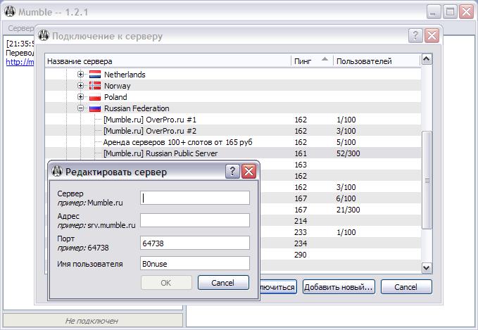 Иногда бывает необходимо подключиться к серверу как незарегистрированный пользователь. Для этого нужно поставить галочку Supperss certificate and password storage на вкладке Network, которая появится после того, как Вы установите галочку Advanced для включения режима Экспертных настроек Мамбл. Таким образом, Вы запретите клиенту передавать какие либо пароли и данные сертификата на сервер (как будто Вы нигде не регистрировались и не вводили никаких паролей для сервера или учетных записей). Только учтите, если Вы подключаетесь к серверу из закладки в Избранных, то нужно изменить имя пользователя на незарегистрированное на сервере, иначе будет требовать пароль для подключения с зарегистрированным ником.