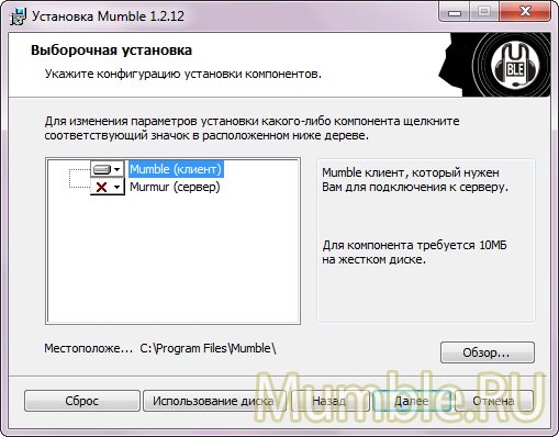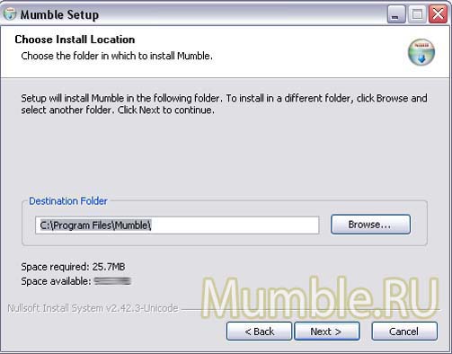 5. Выбираем папку, куда будем устанавливать Mumble. И нажимаем кнопку "Next".